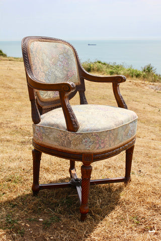Perhaps some of the finest carving to be found on the ships furniture would arguably be the hand carved French Walnut chairs produced for the A'la carte restaurant. Every single element of the chair has hand carved and finished decoration. Completed in a loose French Louis XVI style to match the expensive French Walnut paneling and gilt decoration of the room, the chairs are a tour de fore of the skilled artisans of Harland & Wolff's Belfast yard. The chairs sing with the opulence of the gilded era, and feature many tell tale motifs that embodied the time. On the tops of the legs and arm supports we see highly stylised acanthus leaves, around the base of the seat is a support made up from laurel leaves, and framing the chair back is a repeating scroll pattern, all these design motifs being stylistically borrowed from the classical ancient world.