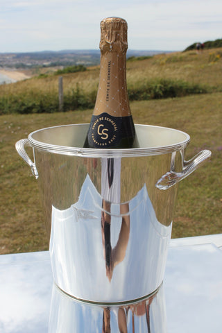 A fine perfect ice bucket or ice pail, these seem to have been introduced along with the rest of the reed & star pattern around 1911 for Olympic's entry into service. The shape and model was in production as late as 1933, although by that stage the hand engraved flag & star was a facsimile and machine stamped, as opposed to this examples from the 1920's, its flag hand engraved by skilled artisans of messers Elkington.